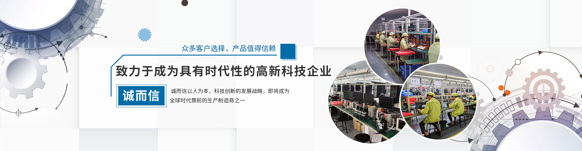 誠而信現擁有多條技術先進、配套完善的JUKI、YAMAHA全自動SMT生產線,全套標準組裝線,生產能力直線上升,可年產平板電腦、攝像頭、MP5等電子產品數百萬臺。